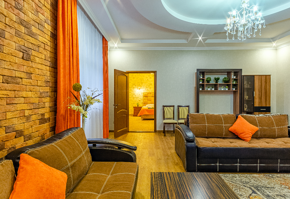 Площадь номера - 45 кв.м. 2 комнаты. 2 осн. места. В номере: телевизор; холодильник; балкон; сплит-система; душ/ванна; 2-спальная кровать. 2 доп. места: Диван - Может быть установлен без ограничения по возрасту.