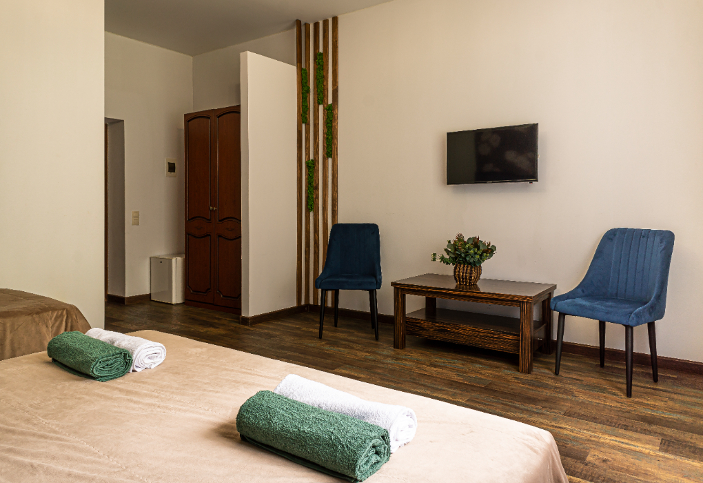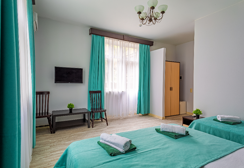 Площадь номера - 28 кв.м. 1 комната. 3 осн. места. В номере: телевизор; холодильник; балкон; сплит-система; душ/ванна; туалет. 1 доп. место: Раскладная кровать - Может быть установлена без ограничения по возрасту.